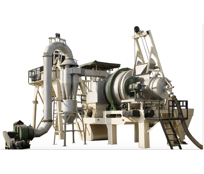 This machine mainly consists of a cold aggregate supply system, aggregate lifting system, drying drum, mixing system, dust collection system, stone powder lifting system, asphalt metering system, finished product lifting system, electrical control system, and pneumatic control device.